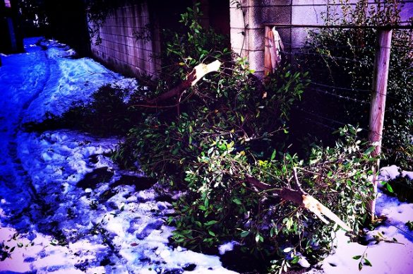 2週続きの大雪。腰痛が治らない。今朝は青空で雪道の散歩だ。景色が雪国のような感じで不思議だ。歩いているといつもの散歩道に大きな枝が折れて落ちている。2度目の雪は重くておまけに雨まで降ったから耐えられずに枝が折れたらしい。ニュースでも屋根が落下というのを見たが雪の重みと力に驚くばかりだ。